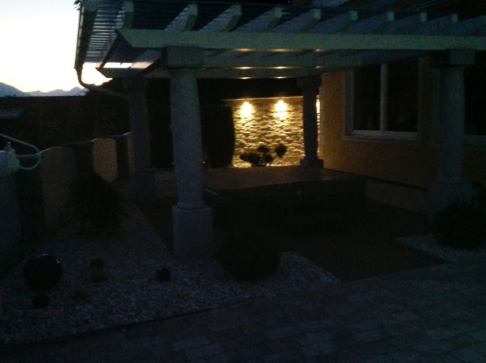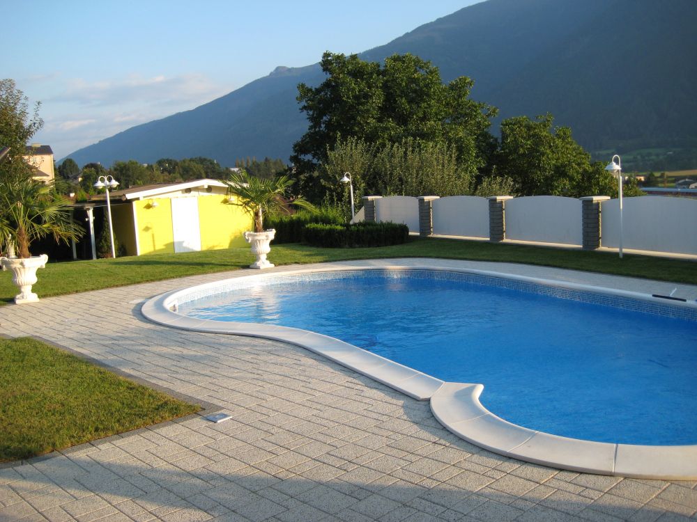 Neben einem Saunabereich wurde der gesamte Garten liebevoll bepflanzt, eine Mauer als Trennelement zwischenSwimming Pool und Liegefläche angelegt sowie der Boden rundum den Swimming Pool mithochwertigen Pflastersteinen verlegt.